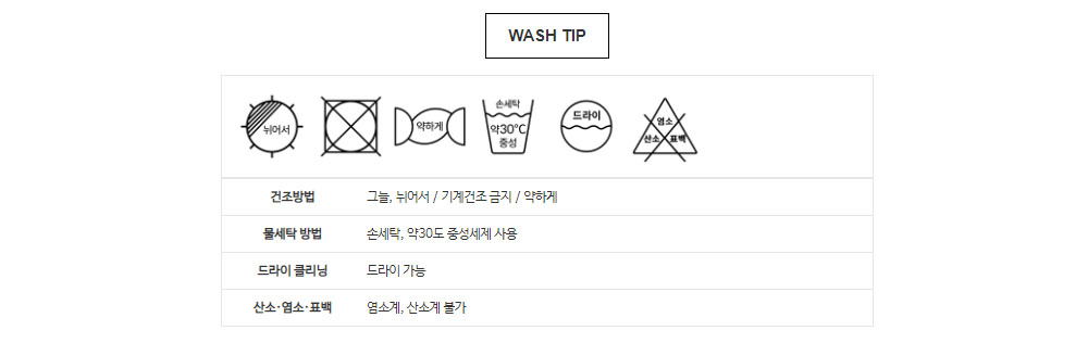 - 세탁 : 중성 세제로 가볍게 손세탁 또는